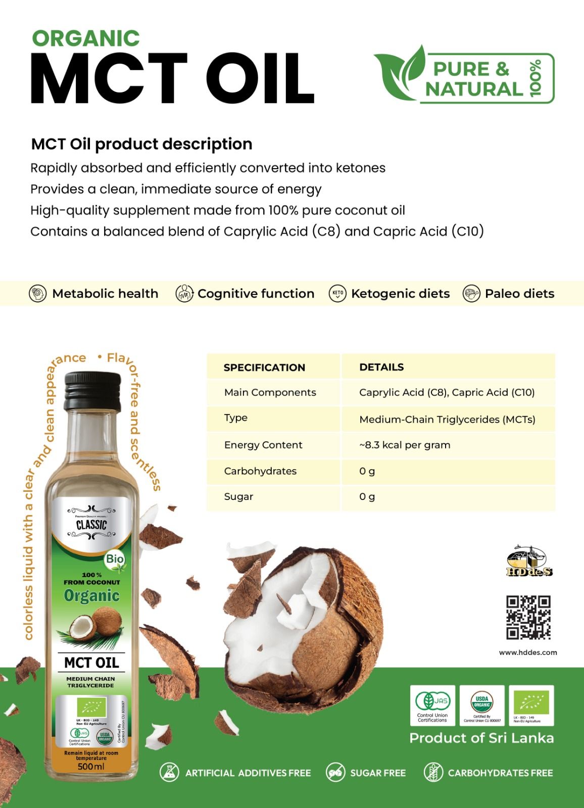 HDDES Extracts (Pvt) Ltd is a leading Sri Lankan manufacturer and exporter of high-quality organic and conventional natural ingredients, catering to the global food, beverage, nutraceutical, cosmetic, and personal care industries. With a strong focus on sustainability, innovation, and quality assurance, the company offers a diversified portfolio that includes: • Spices (whole and ground, organic and conventional) • Essential Oils (steam-distilled from premium botanicals) • Oleoresins (highly concentrated spice extracts) • Herbal Extracts (standardized and custom botanical extracts) • Floral Extracts (for perfumery and cosmetic applications) • Hydrolates (aromatic floral waters) • Natural Aromatic Chemicals (naturally derived isolates and blends) • Coconut-Based Products (virgin coconut oil, coconut milk, and derivatives) Global Presence and Quality Assurance: HDDES operates with a commitment to traceability, ethical sourcing, and stringent quality control across every stage of production. The company is certified to meet a range of international standards, including IFS and BRC. |