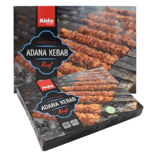 Beef adana kebab is pre‑cooked, seasoned minced beef prepared in the traditional Turkish Adana style and frozen for convenience. This case contains ten 380g portions, ideal for heating and serving in wraps, sandwiches, with rice, salads, or as a quick, flavourful meal.