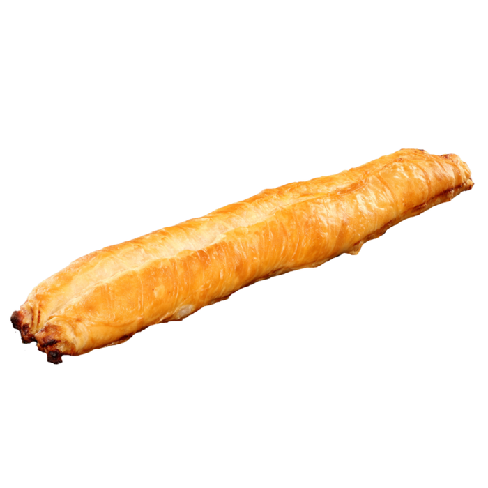 Master Double Roll with Turkey Ham & Yellow Cheese are frozen savoury puff pastry rolls filled with seasoned turkey ham and melted yellow cheese for rich, satisfying flavour. This case includes forty 180 g rolls, perfect for baking or heating and serving as snacks, appetizers, or quick meals in foodservice settings.