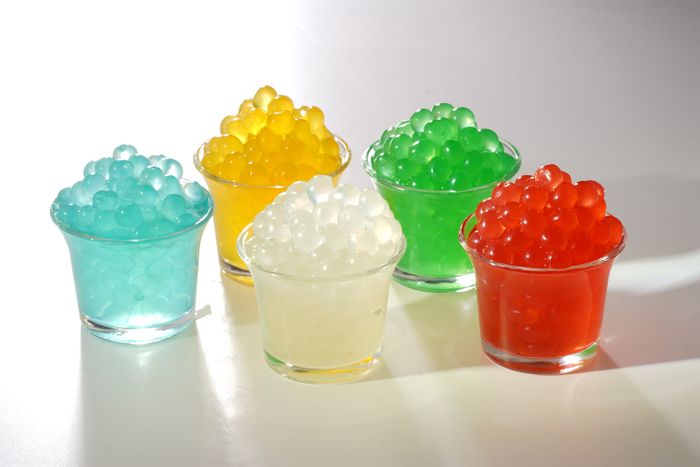 Popping pearls are small, juice-filled spheres that burst with flavor when bitten or squeezed. They are the most popular bubble tea topping in the European market. In the American and Australian markets, people have fruit popping pearls with frozen yogurt frequently.