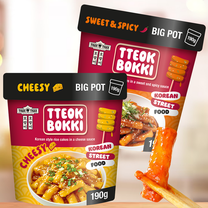 With their soft, chewy texture, rich sauces, and authentic seasoning, Tiger Tiger Tteok Bokki offers a true Korean street-food experience — vegan, fast, flavour-packed, and irresistibly tasty. Available in three mouth-watering flavours: Cheesy, Sweet & Spicy, and BBQ.