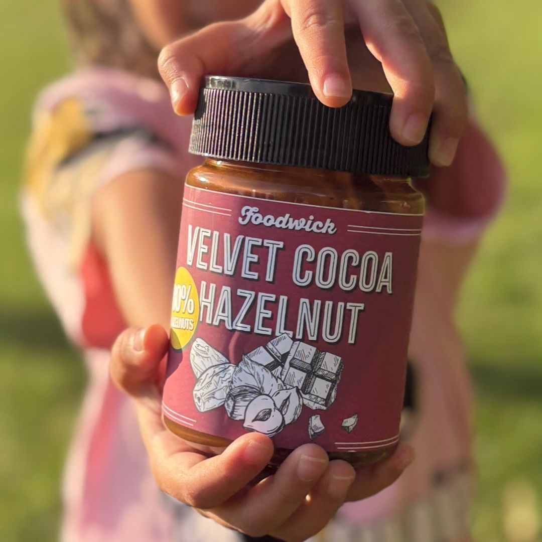 Foodwick Velvet Hazelnut Cocoa Spread, the luxurious, sugar-free spread reinventing clean indulgence. Made with 80% premium roasted hazelnuts and naturally sweetened with dates, this cocoa spread blends deep nutty richness with cocoa?s comforting warmth?without refined sugar, dairy, or palm oil.