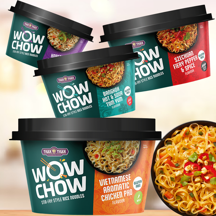 Available in four delicious flavours — Bangkok Hot & Sour Tom Yum, Korean Spicy Beef, Vietnamese Aromatic Chicken Pho, and Sichuan Fiery Pepper & Spice — Wow Chow offers something for every taste preference, from tangy and aromatic to rich, spicy, and fiery.